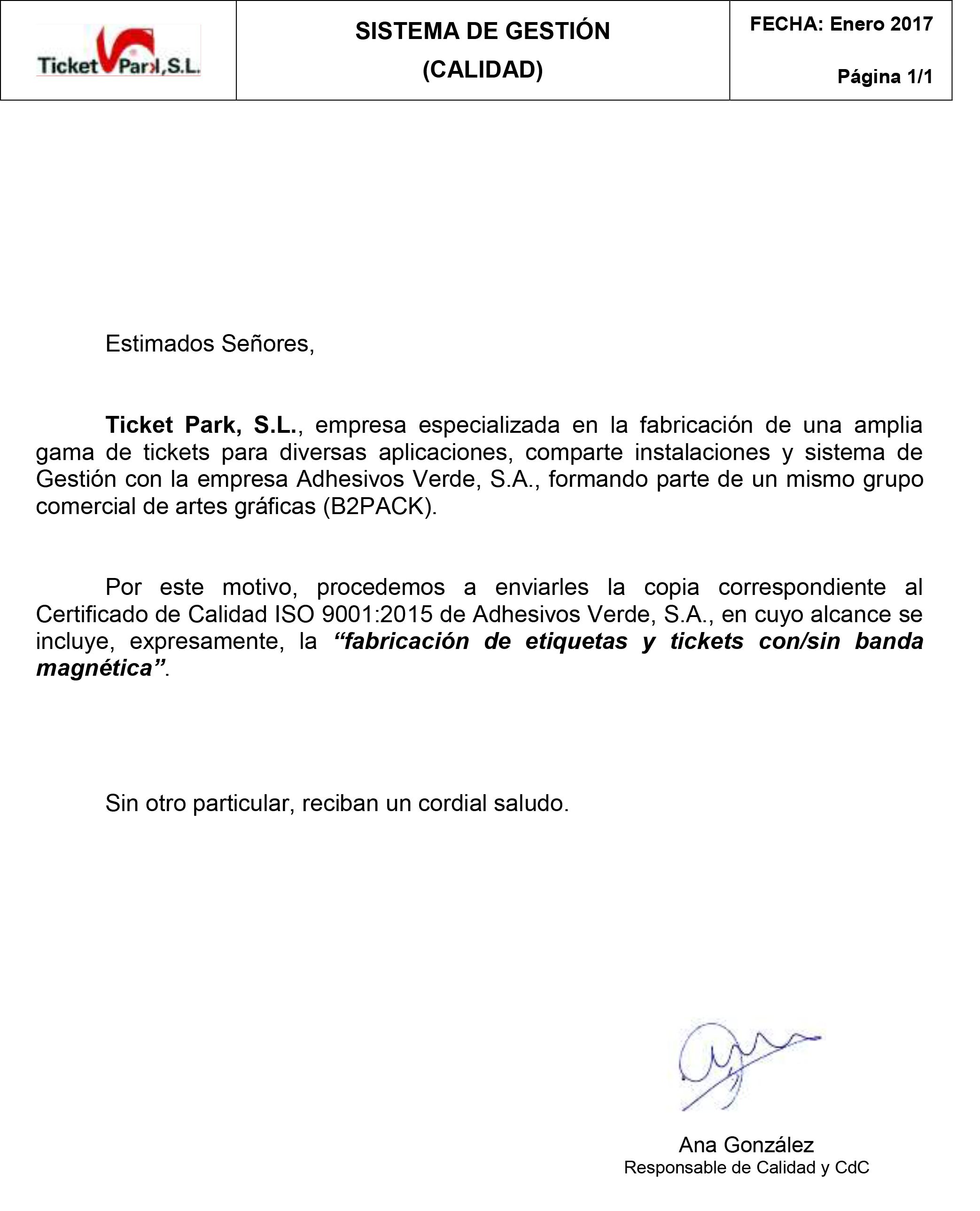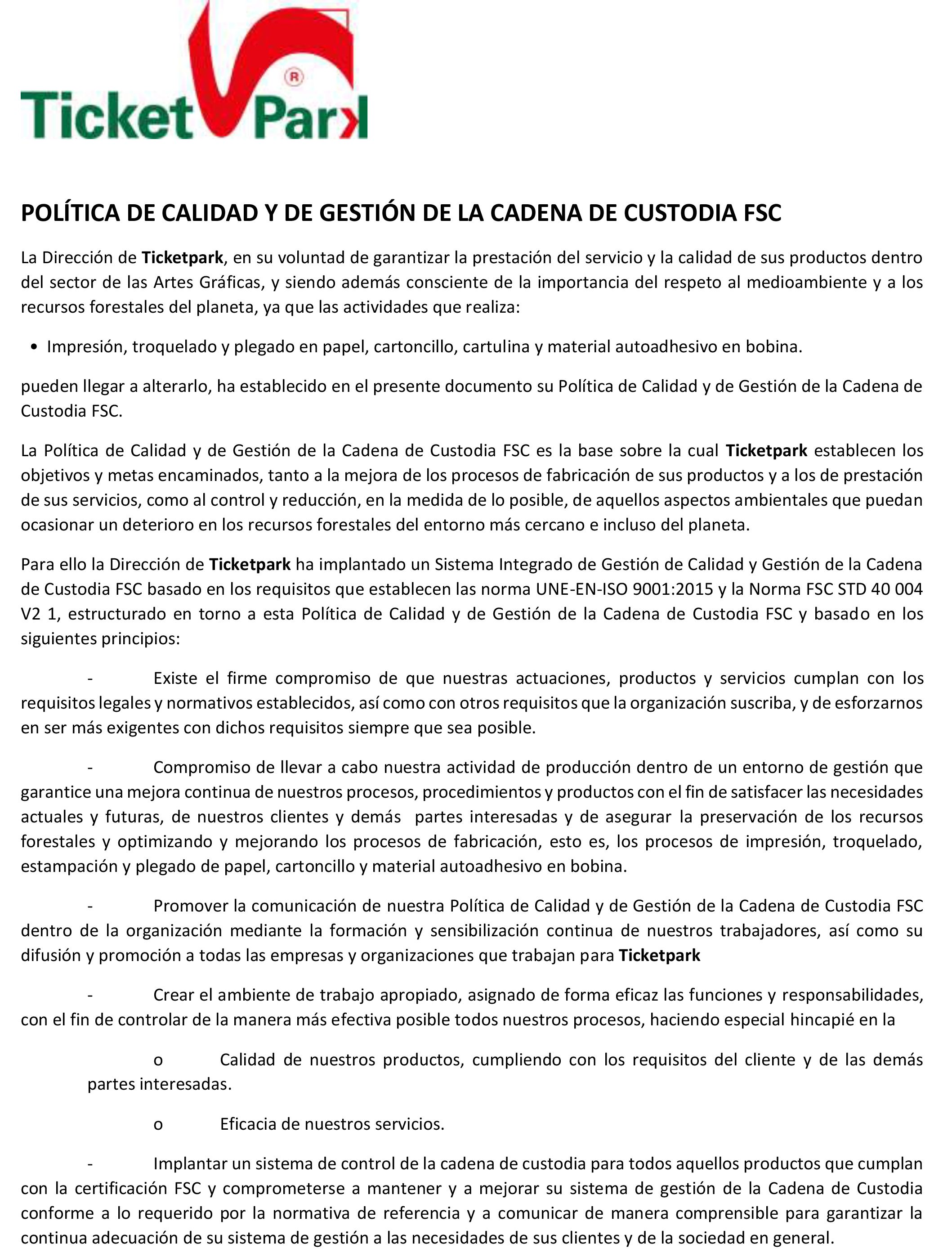 En Ticket Park seguimos unos rigurosos controles de calidad avalados por la certificación ISO-9001-2015.